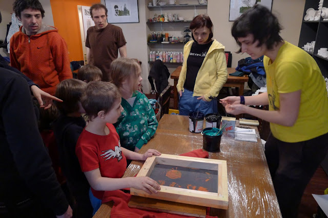 [ sítotiskový workshop pro děti / workshopworkshop / 20.2.2011 / CR - Praha - Vypálené kotátko, Mařákova 5, Praha 6 ]