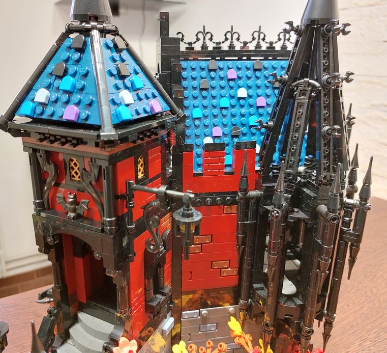 Na závěr bych chtěl vyzdvihnout, že designer použil spoustu dílků netradičním způsobem, aby vytvořil ozdoby, věžičky, lomenice, okna, schody, zábradlí v gotickém stylu – a povedlo se mu to. Něco jsem se snažil nafotit.