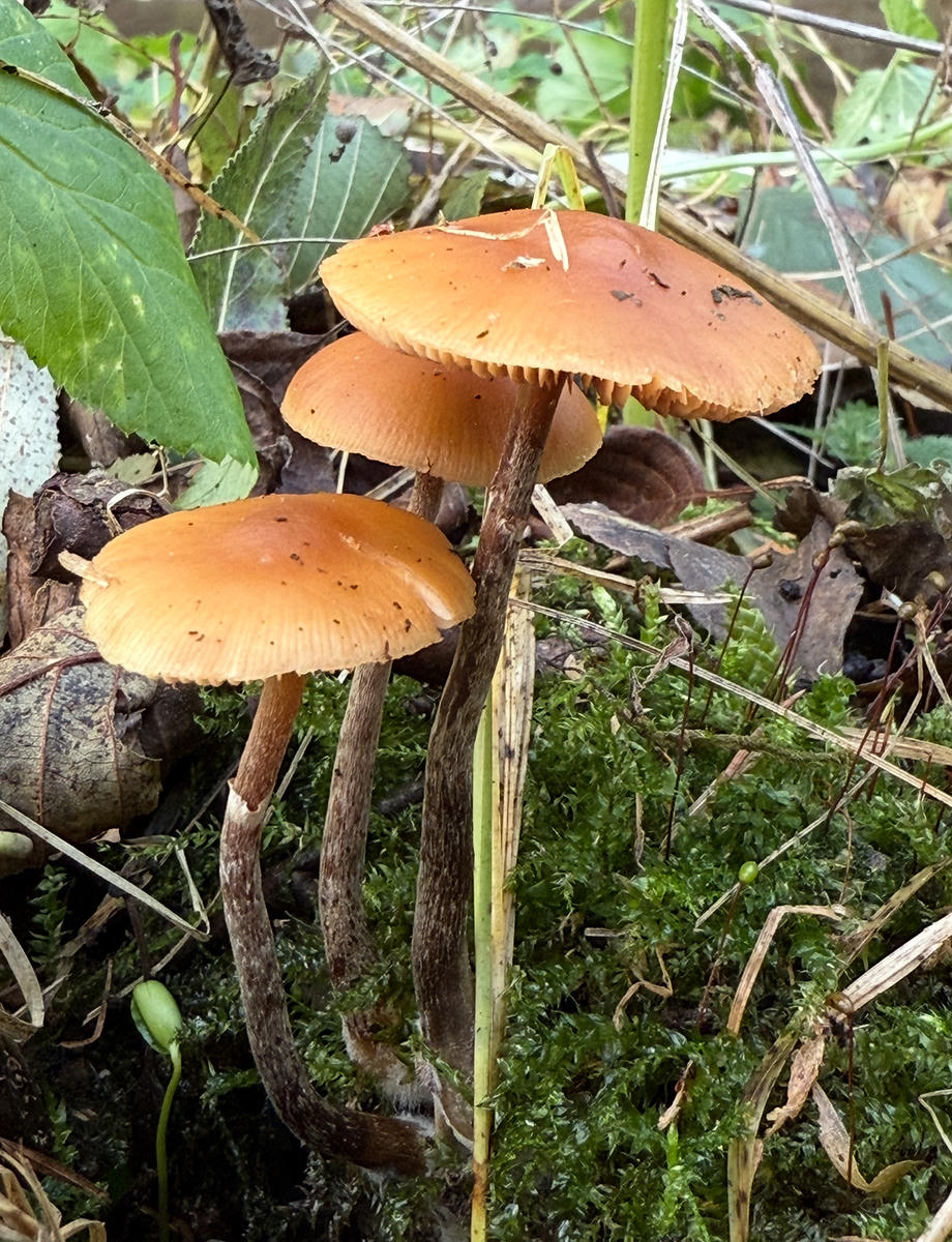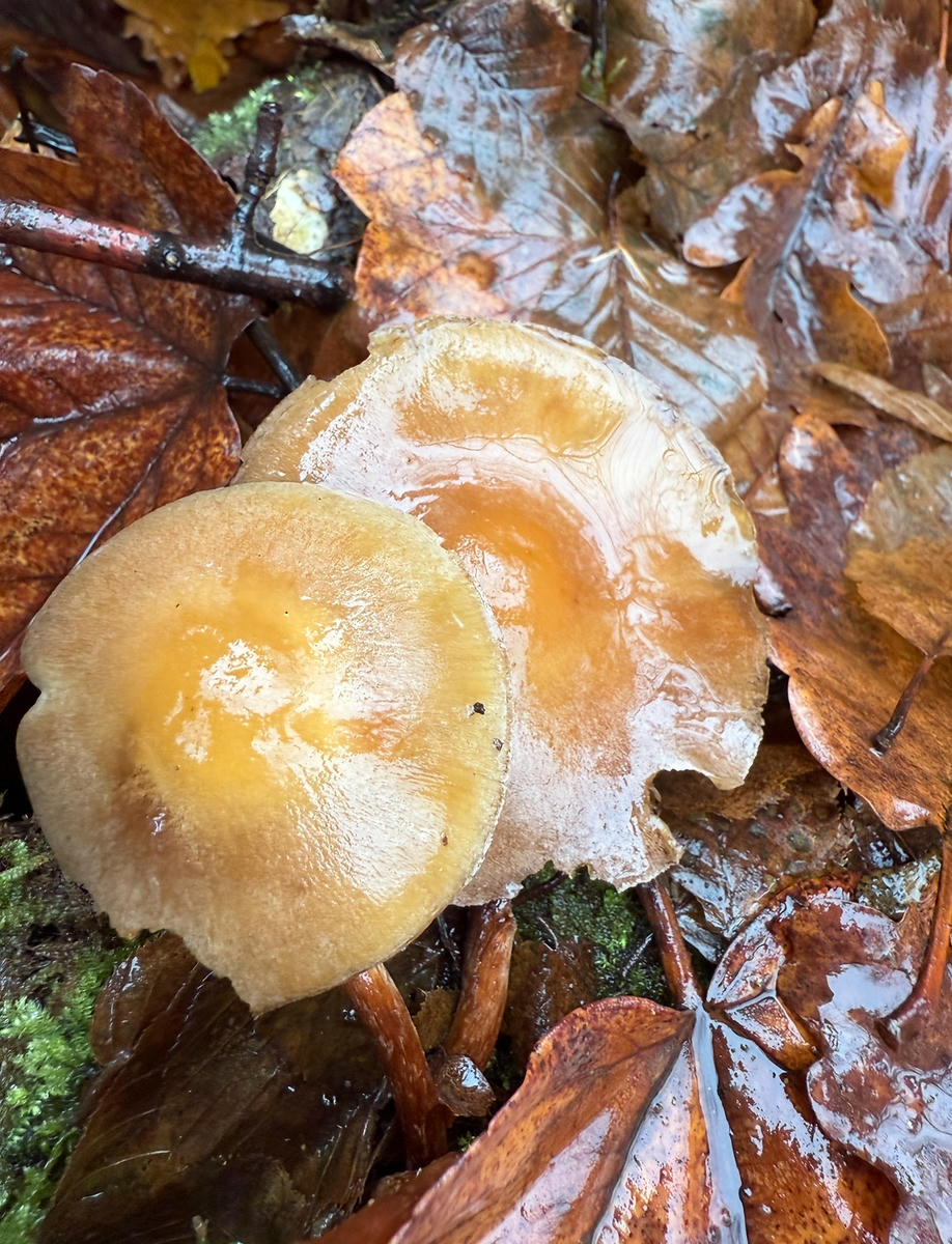 Poznáte, co je to za houbu? Nejdříve jsme s nadšením mysleli, že je ta správná a velká, ale má tlustší oranžovou nohu a celá je větší. Lehce do oranžova, ale na čepičatku nevypadá, nepodařilo se mi ji dohledat.