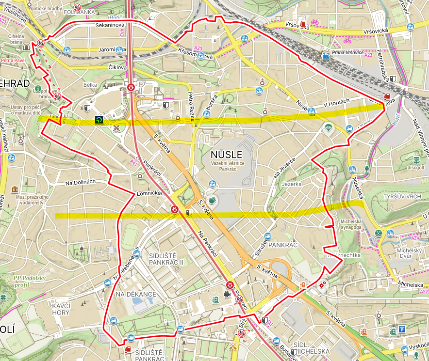 PSYKUK: Myslel jsem za magistrálu směrem k Vltavě tj. na západ. Neřekl bych, že je kostel sv. Pankráce prostě v Nuslích no. :) A zcela subjektivně Sdružení bych tipoval, že bude dělit Nusle od Michle. A taky ne! :D Holt jsou Nusle výrazně větší, než jsem myslel.