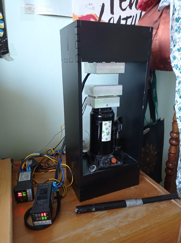 Jinak lis jsem si vyráběl dle své konstrukce, svařovaný, tlakuju to pomocí 10tun zvedáku ale 6t ti úplně stačí, teď už se většinou lisuje podle reálného tlaku dle tlakometru, ten tam nemám takže to tlačím tak nějak od oka "aby to teklo" a zároveň se neprotrhl sáček. Zatím jsem lisoval jen z palic kde je důležitá "svěžest" materiálu a vlhkost v něm, ze suchého materiálu toho moc neteče, každý strain se taky chová jinak, zde většinou platí že čím větší trichomy tím lépe.