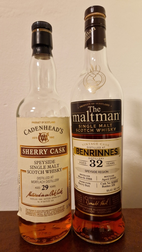 Největší zábava nicméně je, že ji tu teď na střídačku - či občas i současně - popíjím s jinou 1988. ;) Ta Mortlach mě mimochodem v roce 2020 přišla na necelých 250 eur.