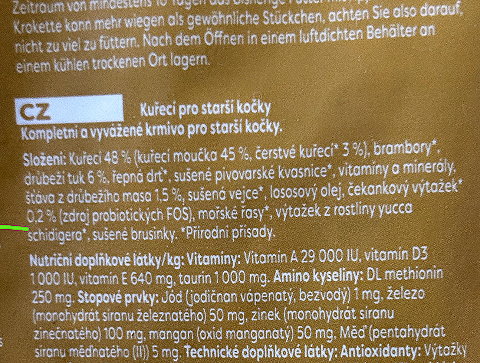 Podobný případ - roky jsem kočce kupovala granule. Změnili obal. Říkám si OK, tak snad nezměnili složení, starý pytel jsem si na nákup nevzala. Velikost s cena stejná, ejhle…složení je poněkud jiné: