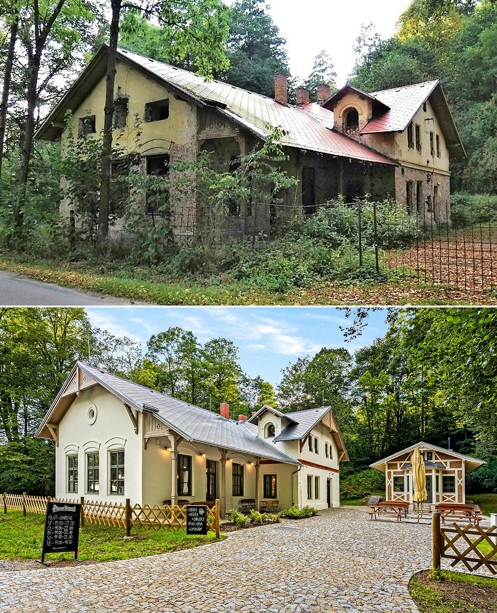 jedná se o bývalou nádražní budovu v blízkosti ŽST Horažďovice předměstí, dům byl dlouhodobě prázdný. Kdosi se rozhodl z něj udělat kostku.. fotka z mapy.cz před, poté omluvte na rychlo focenou fotku z vlaku po. :(