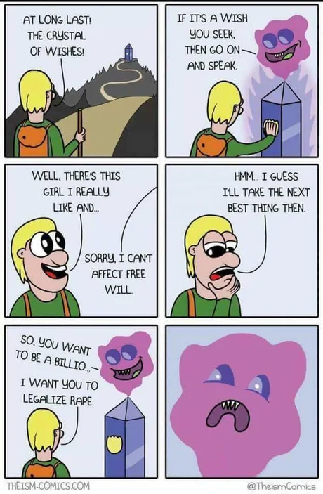 Manželka reprezentuje však jakousi jinou sílu, která údajně také ráda pomáhá mentálně postiženým. Což je opět zajímavé, protože pak to, podle autora, znamená, že vnímá People of 2SLGBTQIA+++ jako mentály, i když ti zatím jakoby oficiálně na vlajce své místo nemají. Takže buďto autor tento rozpor chtěl ukotvit jako vztyčený prst, abychom se zamysleli nad házením lidi (do jednoho pytle) na jednu vlajku, nebo to mírně nedomyslel a v ději a postavách má zmatek.