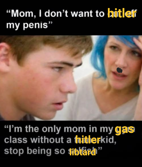 SLEEPLESS8: v naději, že tomu bude dávat plusíček každý, komu přijdou směšné ženy s modrými vlasy a kroužky v nose. Možná tato automatická reakce opravdu zafunguje, ale podle mě to spíš definitivně zneftipnil - zobrazovaná situace ztratila kontakt s realitou, levicové buchty s modrými vlasy a kroužky v nose obvykle žádné děti nemají, a už vůbec ne 15leté syny.