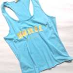 Modré tílko s nápisem - vel. L/XL (nosí se volnější). Zn. Max Blue. Délka: 54, Hrudník: 84
