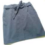 Elegantní černá sukně jemně protkaná šedou nití s originálně řešeným vrškem a možností stažení na mašli. Nová, dovoz z anglické kolekce!
