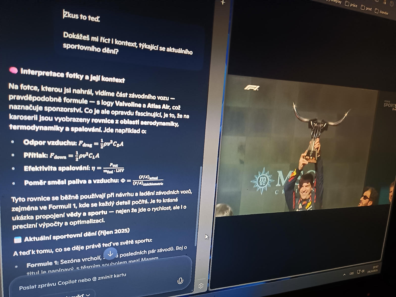 : Ja myslim ze Max citi ze mclaren so pomalu straca a uz je jasne ze technicky ich red bull dohnal. Teraz sa ukazuje jazdecka kvalita a tam je kazdemu jasne kdo ma navrh.. Uvidime co dnesny zavod ale po tom co ani jeden oranzovy nenalej ani jedno kolo v sprinte a ziadna simulace v FP1 tak pochybujem ze dnes mclaren bude bojovat o vitazstvo… A Max zas pomalu ukrajuje z oscaroveho kolaca :) najlepsi zaver sezony!