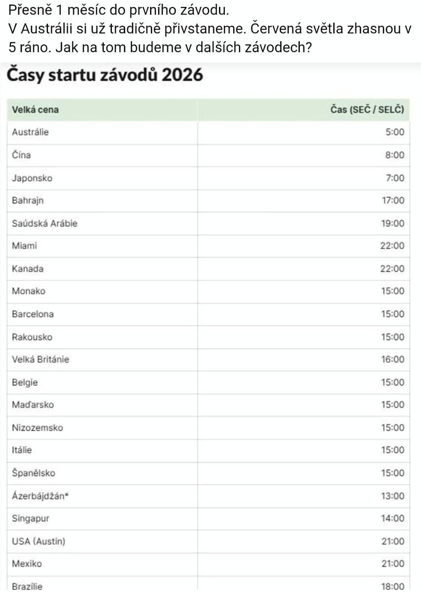 GREGI: Díky za seznam - pozor akorát na ten Ázerbajdžán, tam je výjimka, tam se pojede GP už v sobotu!