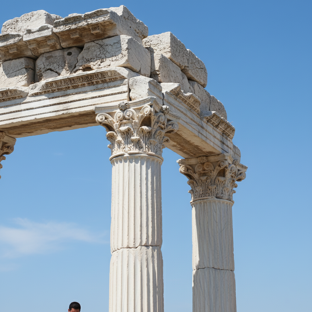 NELLAS: Dall-E byl odhaleny v roce 2021. Podivej se jak spatne je definovany detail na hlavicich tech sloupu. Jo a hranate korintske sloupy jsou velice vzacne. Spis neco co je na fasadach novoromanskych budov.