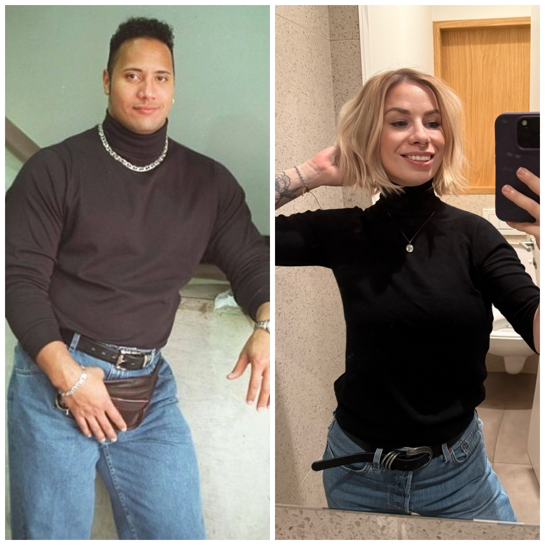 GENEVIEVE: to je příliš normální a vkusné na fildu a jsi příliš učesaná ... to bys měla ještě přidat nějaký pramen svítivě zelených vlasů, odbarvit obočí, do svetru by to chtělo nějaká oka a ty kalhoty jsou moc krátké a tenisky příliš fajné, alespoń k tomu přidej oversized kožený kabát po dědečkovi.... Takhle se hned prozradíš :)