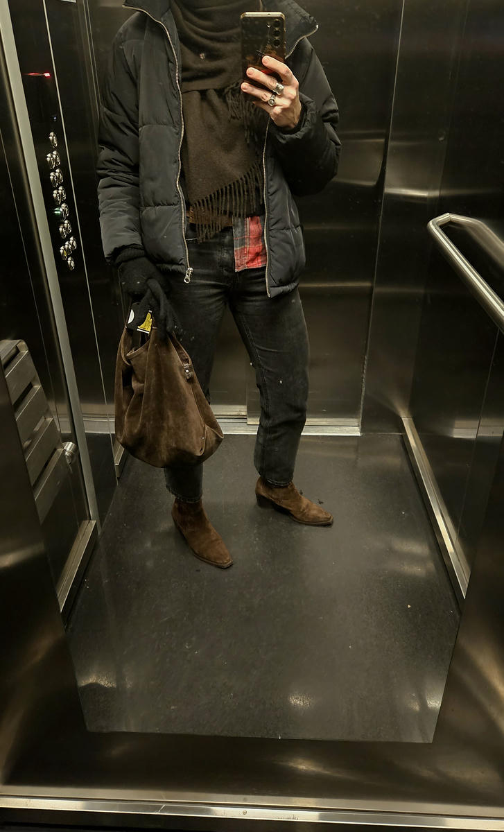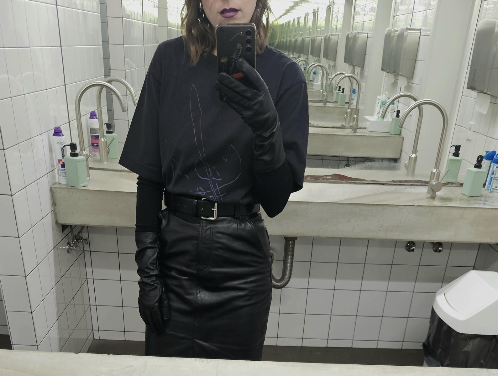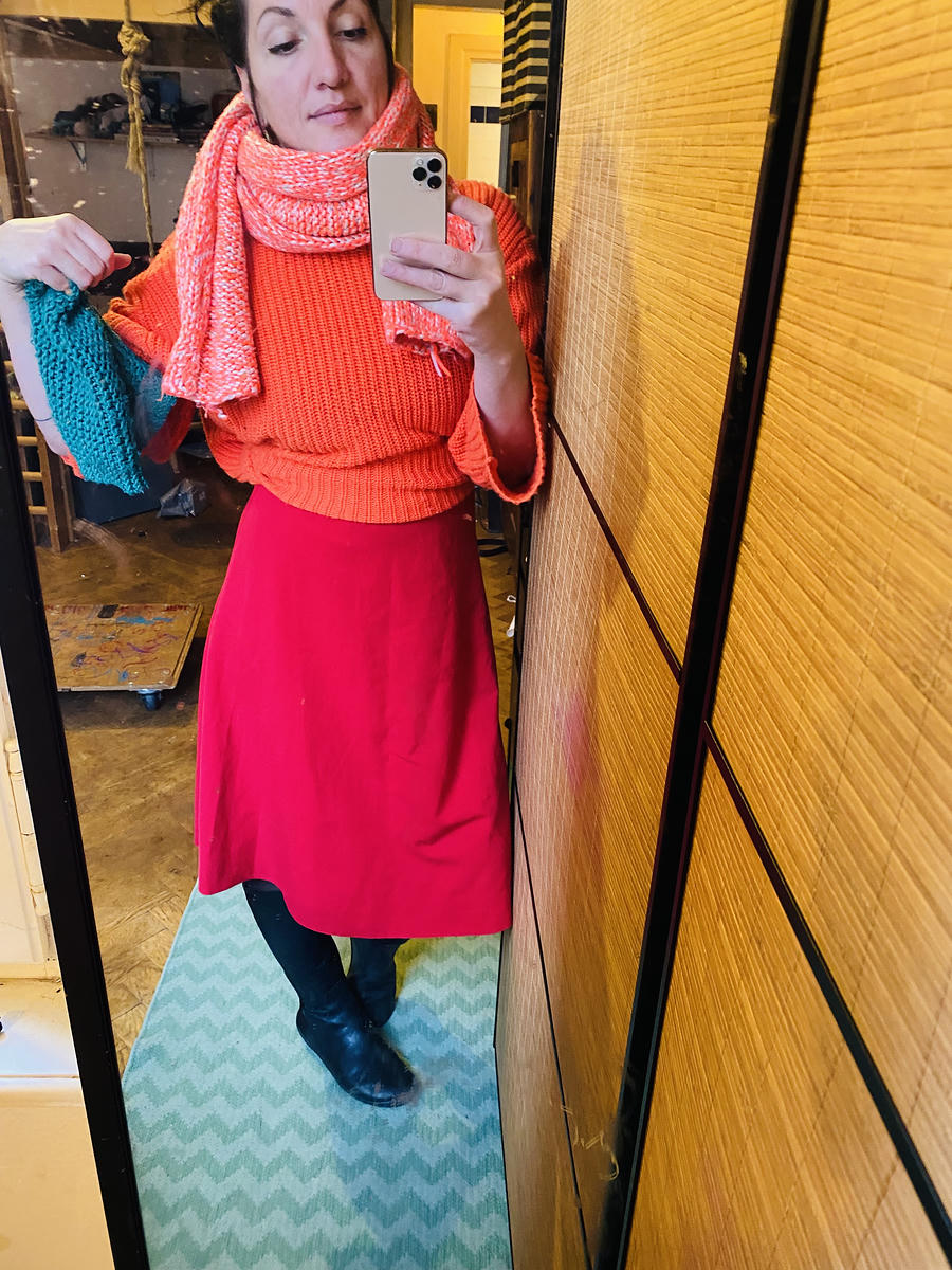 sorry jediny dlouhy zrcadlo mam v kumbale a tam se mi lezt nechce, takze si to musite domyslet, sukne pencil skirt pod kolena a k tomu kozeny kozacky