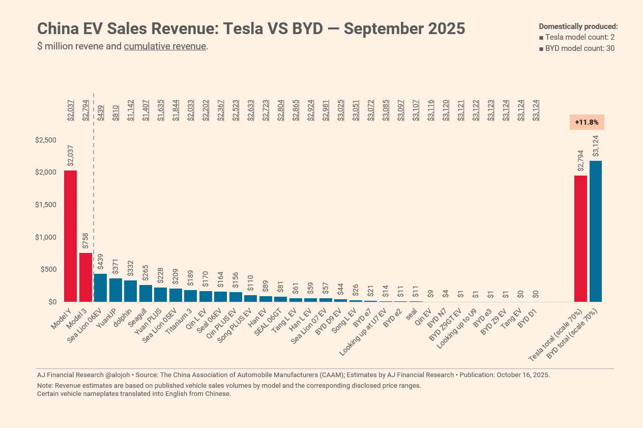 Automakers' share of China NEV market in Oct: BYD leads with 23.1%, Tesla drops out of top 10 - CnEVPost