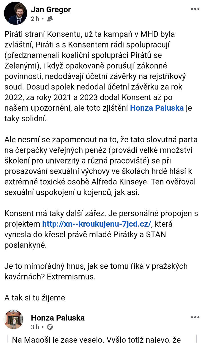 DOCKINEZ: takže, šupky, šupky, onus probandi, haluška vystartuje s doklady z registrů, že firma konsent sro. neměla v okamžiku podepsání smlouvy oprávnění podnikat. jinak jsou to jen kecy.