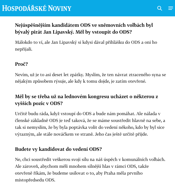 Ta Udža k hvězdě Nové vlny Lipovi tu byla? Nejdřív se podle ní nedostal do ODS, tak to do ní vzal oklikou přes zahraničí za Piráty. Kde pak dělal politiku Pojara a ODS a všichni mu za to až do zrady tleskali.