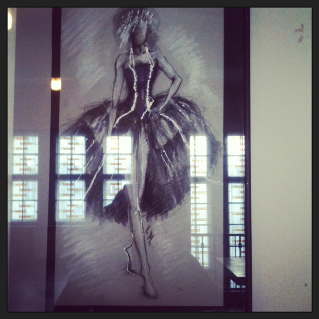 Práce studentek oděvní průmyslovky vystavené na Finančním úřadě pod Letnou.