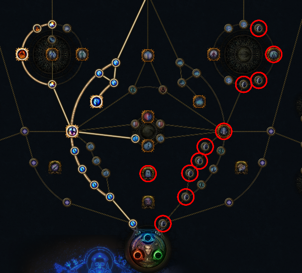 chtel jsem si udelat poprve fire maga (witch), je to typ postavy co jsem nikdy nehral ... a bavi, opravdu bavi i kdyz na zacatku cloveka bude bavit asi kazdy build, ale uz narazim na to, ze jsem mel asi investovat body do energy shieldu, protoze cas od casu preziju opravdu jen diky stesti (takove to, kdyz se kolem vas spawne spousta potvor a busi to do vas jak hluchy do vrat), tady vlastne smeroval muj puvodni dotaz .. kam investovat, abych posilil obranu, zatim me napada ze do INT, ktere soucasne zvetsuje i tu defens, nebo rovnou do specialnich pasivnich skillu viz ty cervene skilly