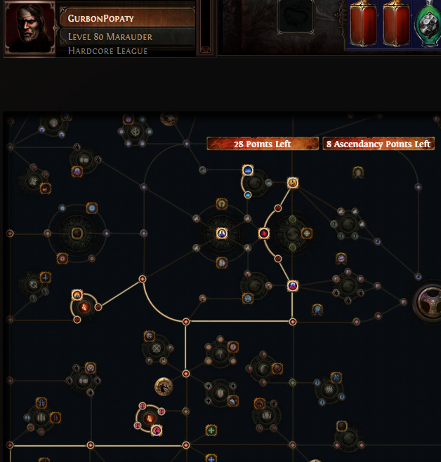 Jen tak z prvni, takhle pochybuju ze mas vsechny resisty 75%+ to je pro obranu naprosta nutnost - vyjimkou je chaos resist, kterej se sice hodi, ale nemusi nutne bejt 75. Mas ve strome nejaky zbytecne utopeny body - propoj nahore pres inteligenci, kompletni kolecka kdy muzes vzdy uvolnit jeden bod, criticaly bych vynechal, kdyz do toho chces jit, chce to o hodne lepsi gear, urcite chces nejaky boty s movespeed, hodne obrany se da nabrat i na flaskach