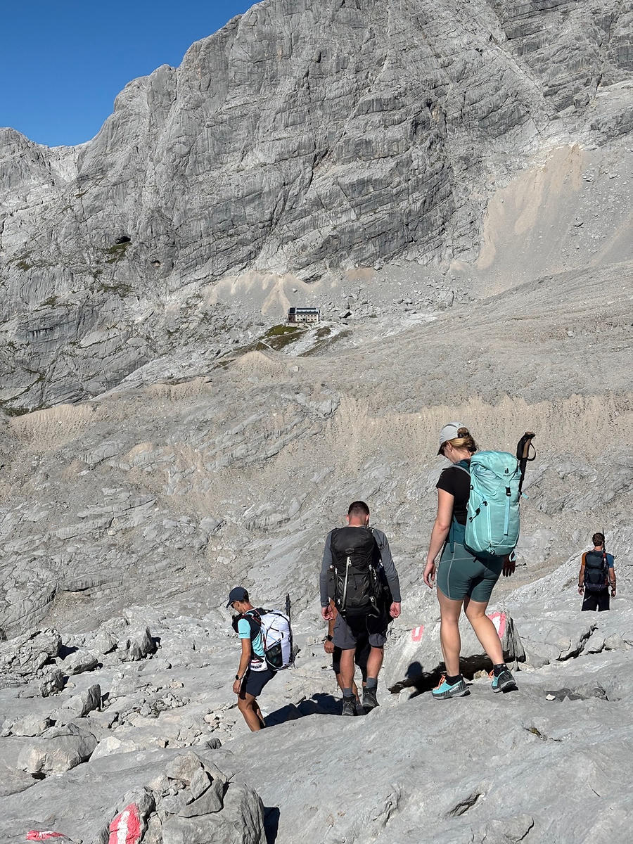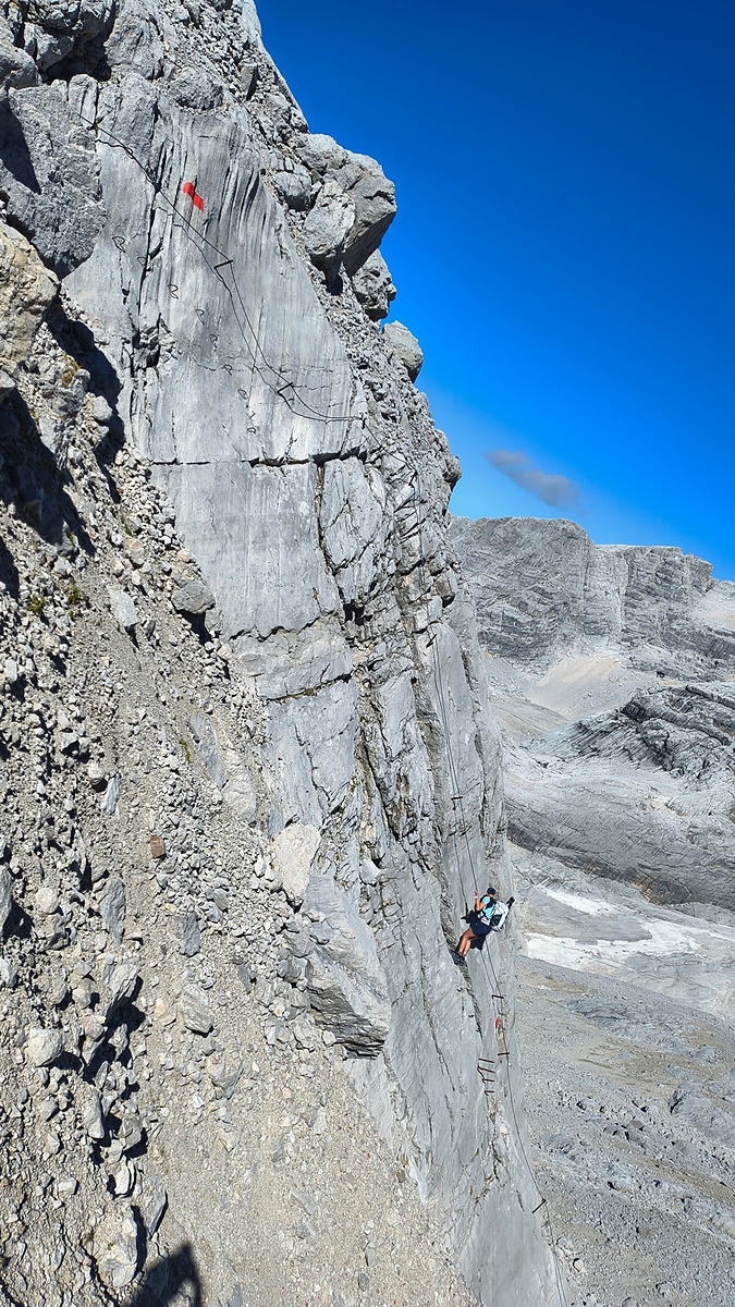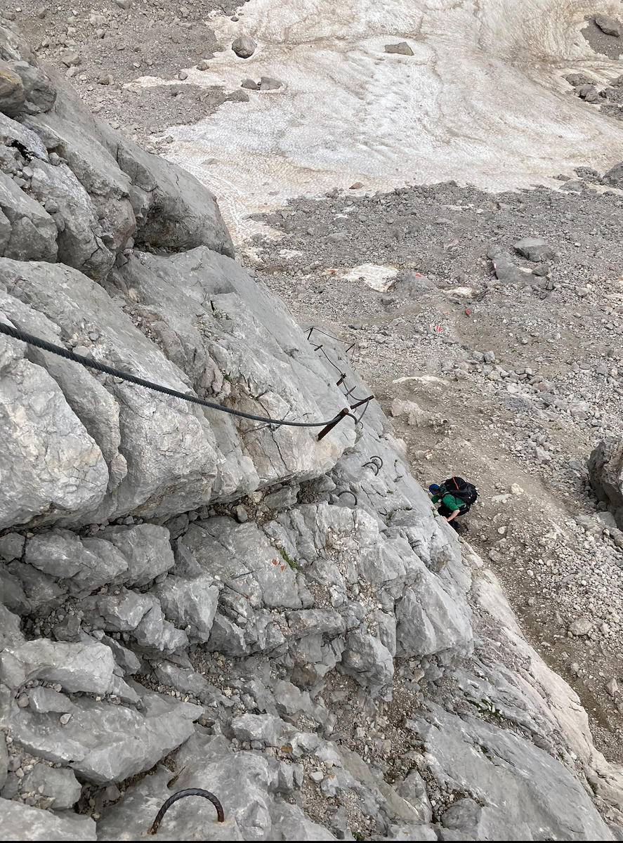 My posledni den pred sestupem sli od Adamka pres ledovec do sedla Obere Windlucke a pak znacenou A/B ferratou na vrchol