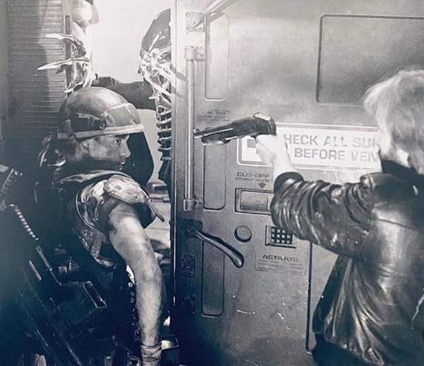 James Cameron teaches Michael Biehn how to blast a xenomorph’s head off :)