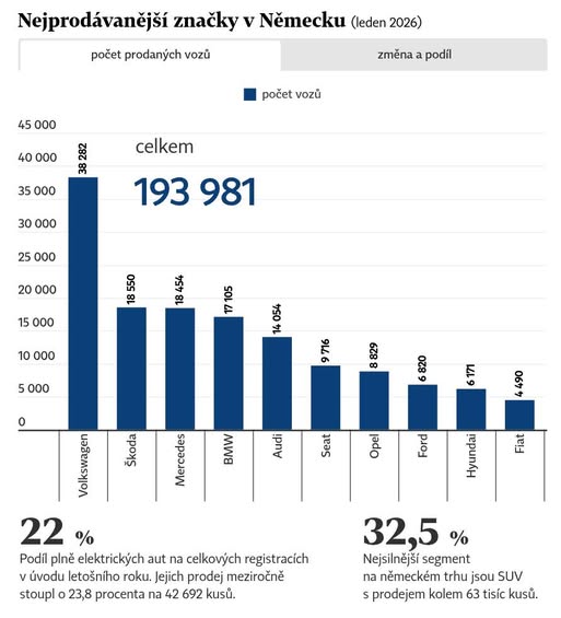 O rostoucí oblibě Škody v Německu svědčí také to, že pokud se tamní soukromí zákazníci rozhodnou „přesednout“ ze spalováku na elektro, pak nejčastěji volí model Škoda Elroq. Vyplývá to ze studie E-Barometer, kterou každý rok zveřejňuje pojišťovna HUK. Podle ní se v období leden–září 2025 takto rozhodlo 9,6 procenta jejích klientů. Plně elektrické SUV Elroq bylo na německý trh uvedeno loni v lednu. -- iHNED