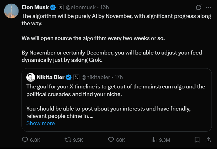MAKROUSEK: to je mainstream algo na twitteru uz 15 let. Ted ti jen rikaj ze pokud ho tam chtit nebudes, tak si to tak nastavis a bude pro tebe twitter spis jako threads. Vic vanilla a genz bez hadek atp. Nikdo te k tomu ale nutit nebude. Neboj :)