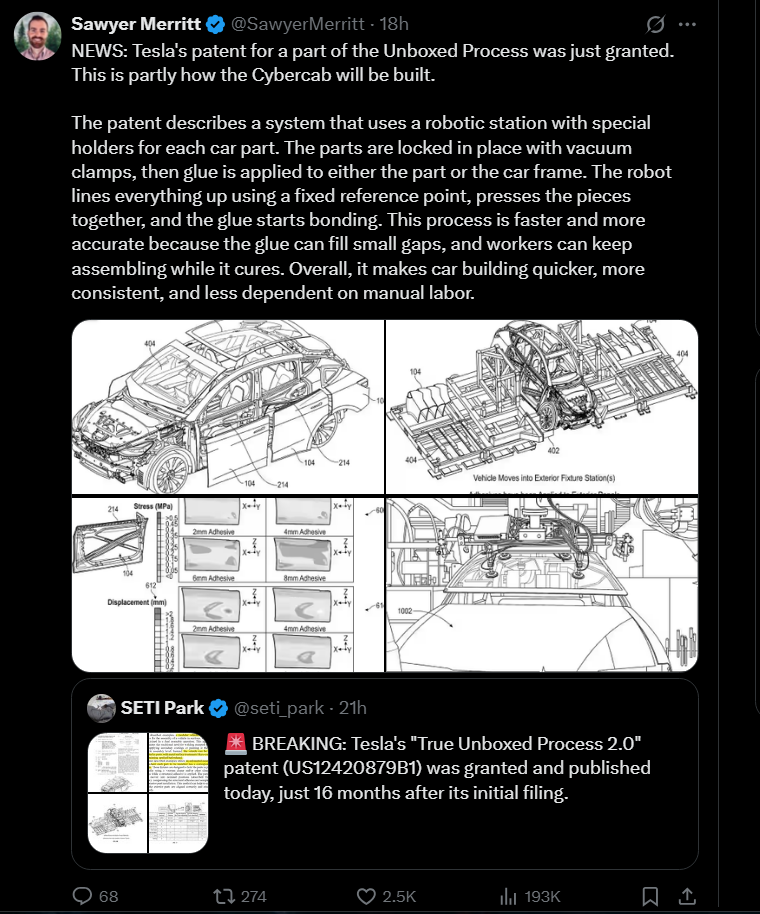 KASPAREK: Meritum prispevku a toho patentu je, ze bude potreba min lidsky prace a bude ji postupne prebirat vic robotu at uz pujde o automaticke voziky, roboticka ramena nebo humanoidni optimusy a zaroven je to o celem zefektivneni tech linek. O tom ze automobilky pouzivaj roboticky ramena se bavit snad nemusime. Staci se podivat do cinsky tovarny tesla nekdy sest let zpatky...pripadne do nemecky