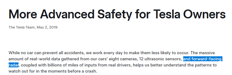 KOUDY: nice clanek z 2017, ale tesla odstranila radar v 2022, z lidi jako ty, elmo musi uplne cakat