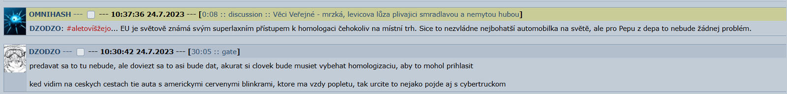 : ne diskuze byla o tom ze v evrope nikdy neprojde to auto homologaci takze tu nebude jezdit. Ne ze ho tu Tesla nebude nikdy offiko prodavat.