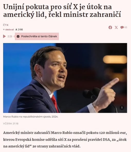 SMI: Neblabolim, uz se Rubio nechal slyset, ze to je utok na americkej lid. Nebude trvat dlouho a Trump rekne - prodej zbrani stop, at si EU trhne nohou a at na ne Rusko zautoci. Ach jo.