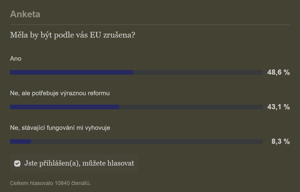 PES: Tak EU uz davno neni to kvuli cemu byla vytvorena. Ted je to hlavne regulacni organ a plno lidem to zacina vadit. Viz treba ten porad propiranej green deal, zakaz spalovaku atp..kterej se tedka taky zmirnuje, ale uz to napachalo miliardovy skody v celem evropskem autoprumyslu. Jsem zvedavej kdy nemci prijdou na to ze vypnout jaderky nebyl dobrej napad.
