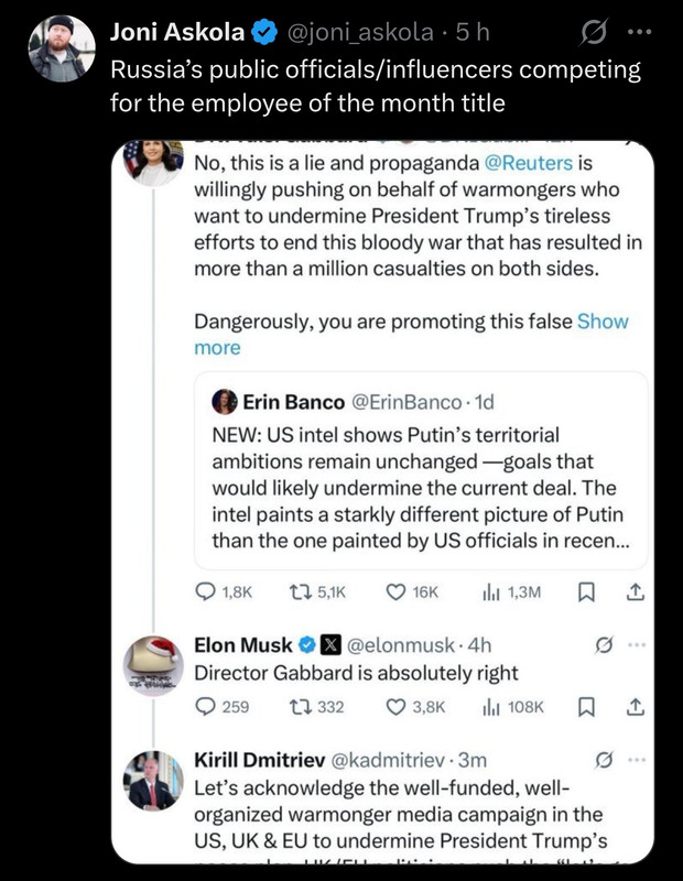 to je náhodou perfektní trik, "vedla" můžeš poukazovat jen na konkrétní úspěchy jednotlivých firem, to že majitel je ruskej zmrd nemá s vypuštěním rakety nic společnýho, selhání rakety je test... takže "vedla", je něco jako kdyby dělala NKVD rok před smrtí Stalina hodnocení pro Beriju ;)