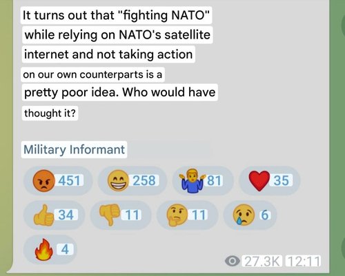 A Russian warblogger explains what the Russian army in Ukraine saw when they were disconnected en masse from Starlink yesterday. ⬇️