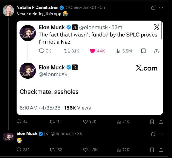 a prej je to teda spis tak, ze kolem Elona je suita, ktera jeho chrani od poslouchani nazoru, co nema rad a lidi od toho, aby s nim museli neco resit