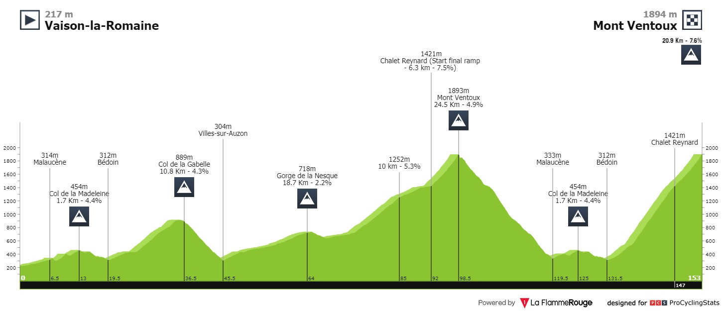 Dnes se jede i ta legrácka na Mont Ventoux. Oproti minulým ročníkům je to 2x až nahoru.