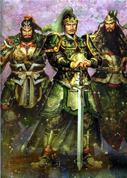 Liu Bei - potomek imperiální dynastie, později vládce království Shu (na obrázku se svými dvěma bratry)