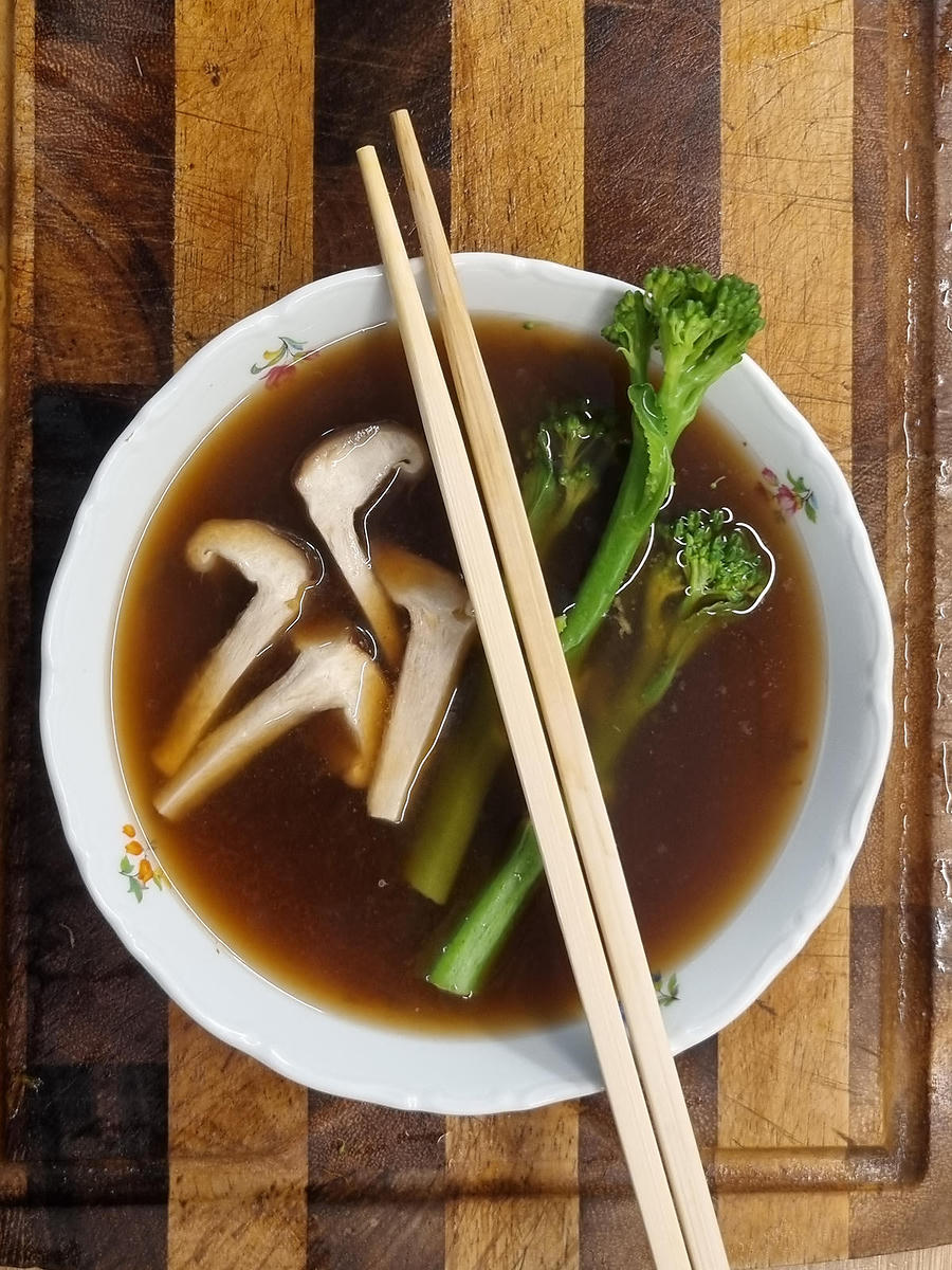 Podzim, no… polévky - dýňová a vývar s rýžovými nudlemi.