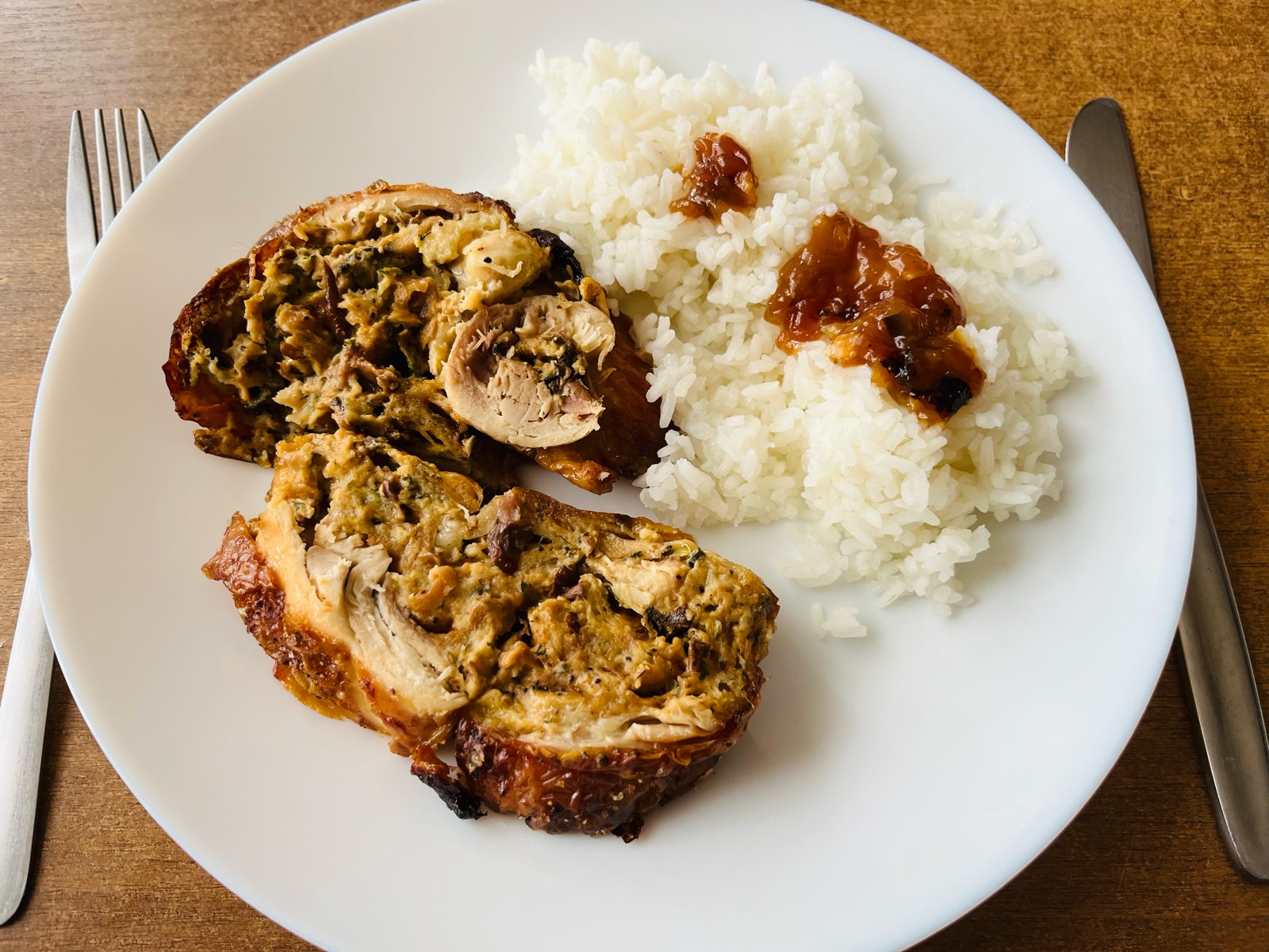 Farmářský kuře plněný nádivkou s lesními houbami.