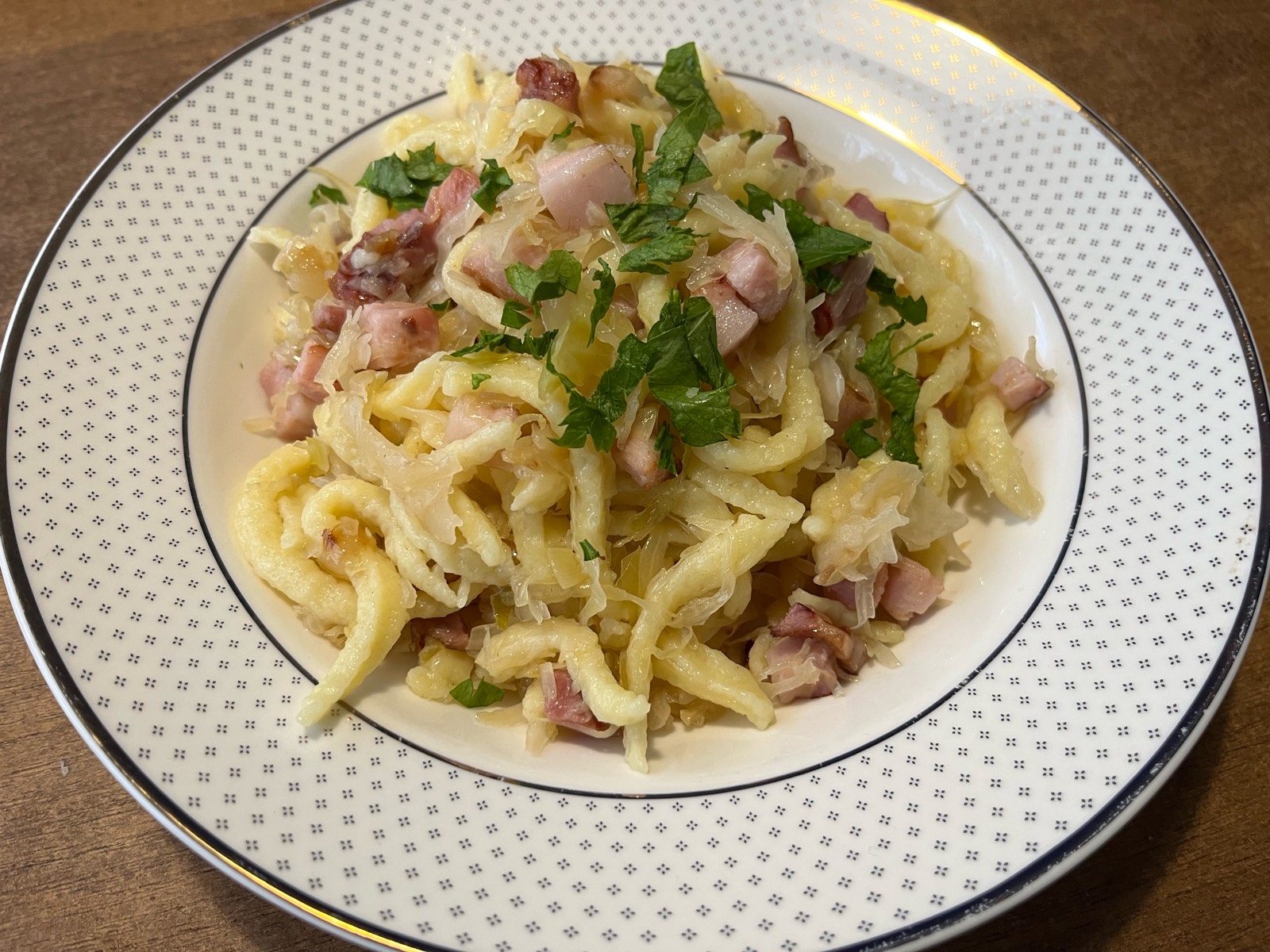 Někdy stačí málo, třeba špecle s bůčkem a kysaným zelím.
