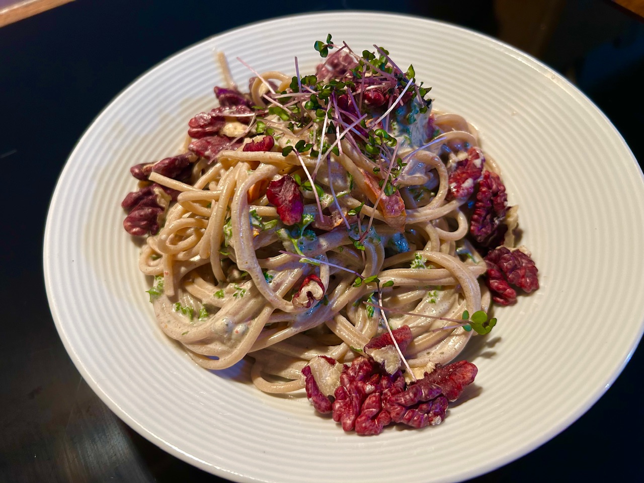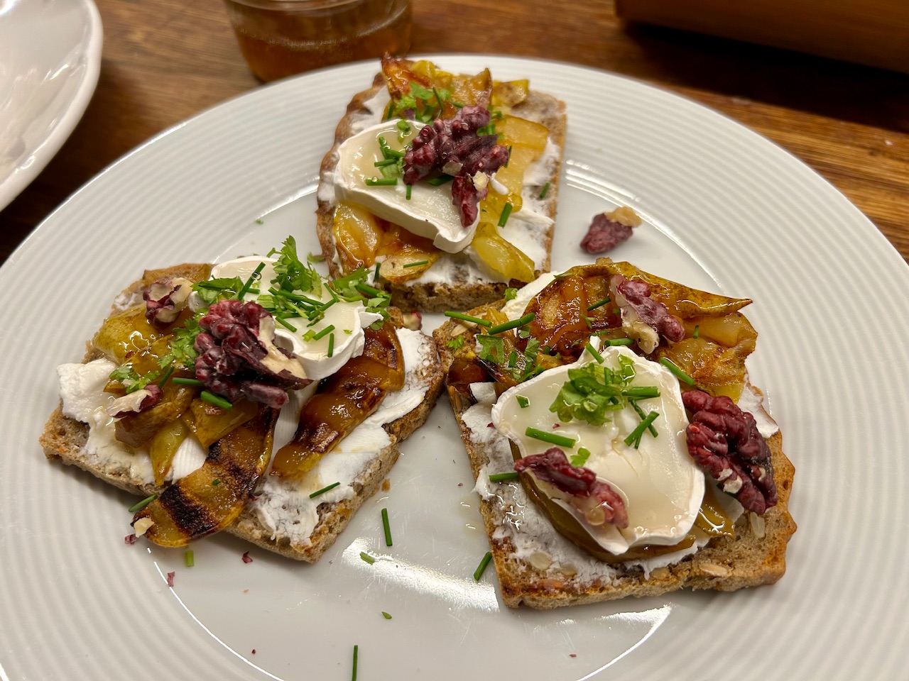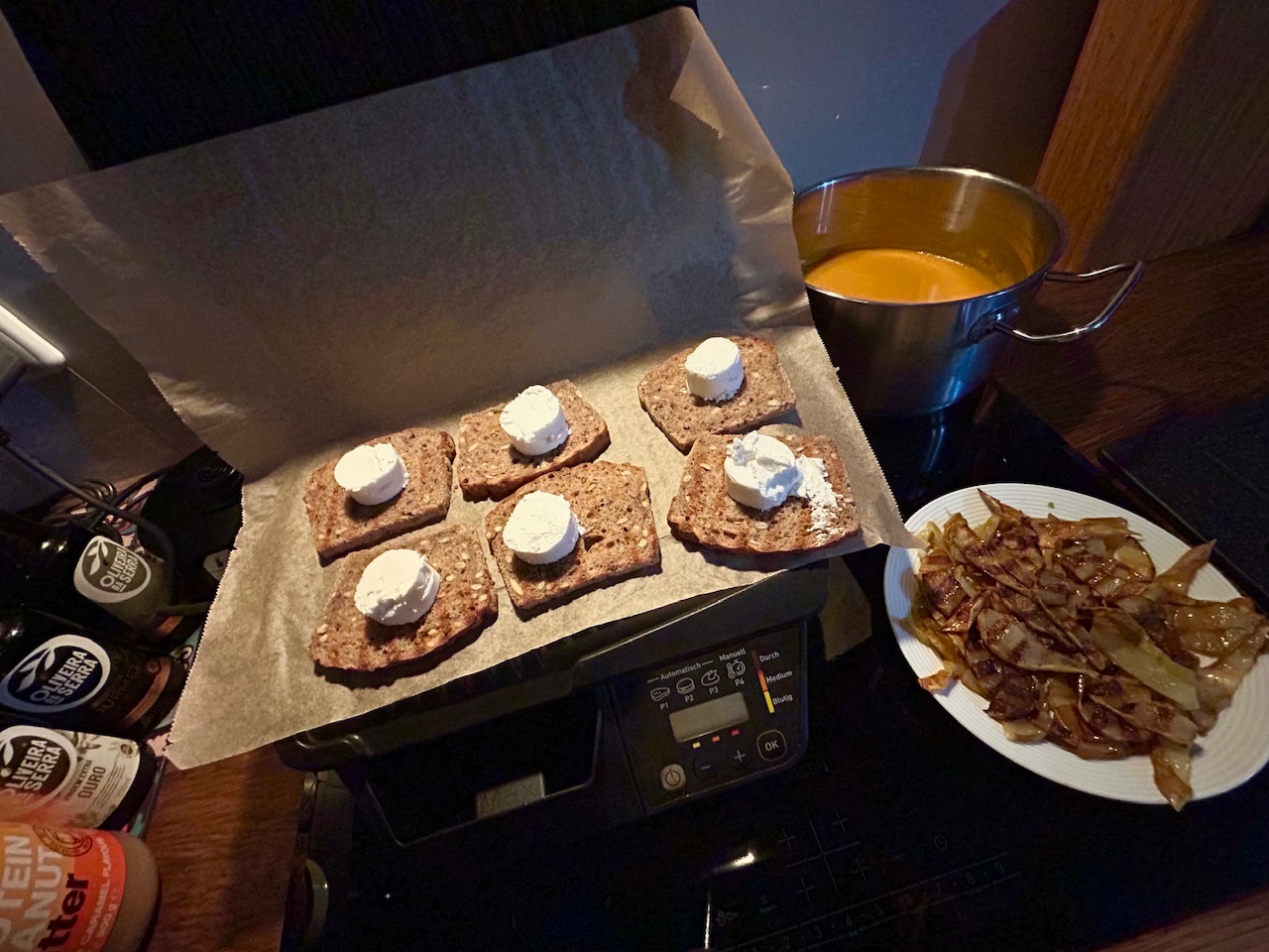 Bez poradi, je tam: houbivy ragu s zerve s krutimi medailonky, testoviny s omackou z pecene dyne s modrym syrem, omacka ze susenych fajcat a listicek s orechy, zitny tousty s kozim syrem, grilovanou hruskou a medem, marinovany baby kure peceny s bramborama pekne na plocho, dynovka a nejaky snidane… ;)