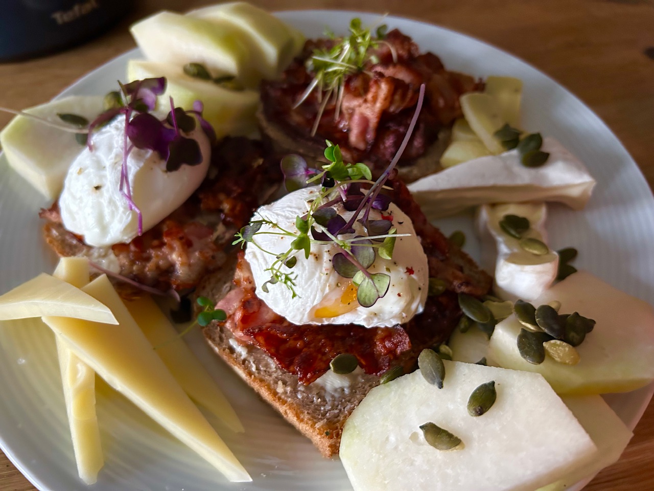 Páteční snídaně šampionů, pro kolegu dneska speciálně bez masa :D