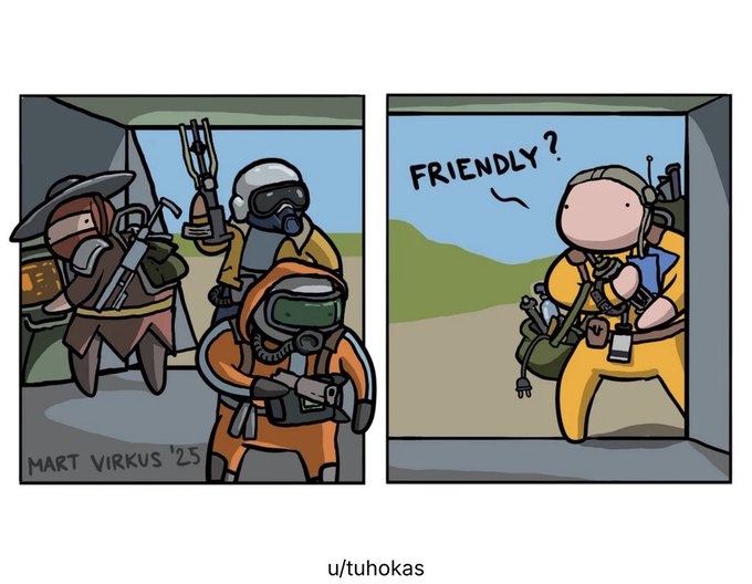 Hraju s kámošem dam battlwground. Mám klíč od control tower. Dojdeme tam, lootujeme jak divý, plný batoh. Cesta zpět daleká, že půjdeme venkem. Venku žebřík, nějaký nebezpečný, končí dole nějak divně. Jedu po něm dolů, hele konec, skočím si na plošinku vedle. Nepovedlo se, padám dolů... umřu pádem. Za vteřinu za mnou padá kámoš. Plazíme se dole. Najednou mezi nás padne další tělo. A za další dvě vteřiny další. Plazíme se dole čtyři. Smějeme se. Dáváme surrender, vypínám pc :)