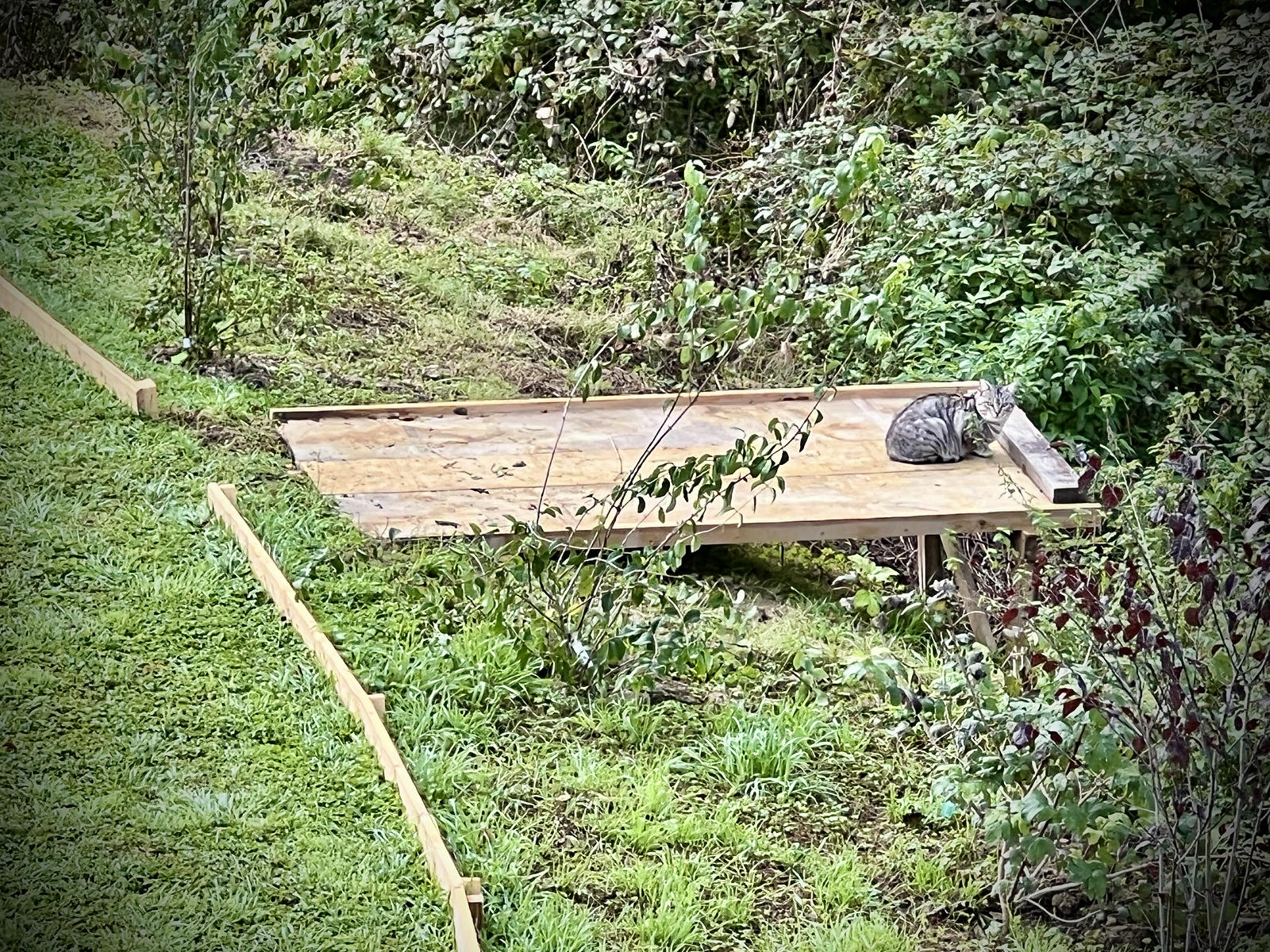 Samozrejme ji nikdo nevysvetlil, ze tahle zona ma svoje hranice: louku chci dal udrzovat jako volnou plochu coz se mi diky robotovi i dari, ale v pohranicnim pasmu se odehravaji tvrde boje. Bojuvky ostruzin se neunavne snazi proniknout do zakazane zony, koprivy na nejaky umluvy kaslou jako Putin. Takze jsme s pritelkyni rozhodli, ze v pocatku strze ktery uz je tak prudky, ze Bruno ma potize ho sekat vysadime radu nami volenych, libe vonicich a kvetoucich drevin, ktere budou casem tvorit prechod mezi radem a anarchii.