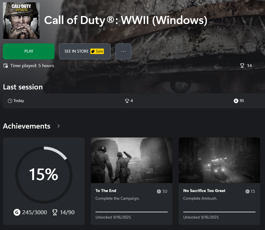 Tenhle kousek CoD do zlatého fondu nezapíšu. Byl to takovej fofr, že jsem si nestih udělat ani žádnej screenshot, tak snad jen takhle. Nutno podotknout, že jsem to fakt proběhl jen po příběhu. Omylem jsem našel asi tři ty věci a párkrát někoho zachránil jako "heroic act", či jak se tam jmenuje.