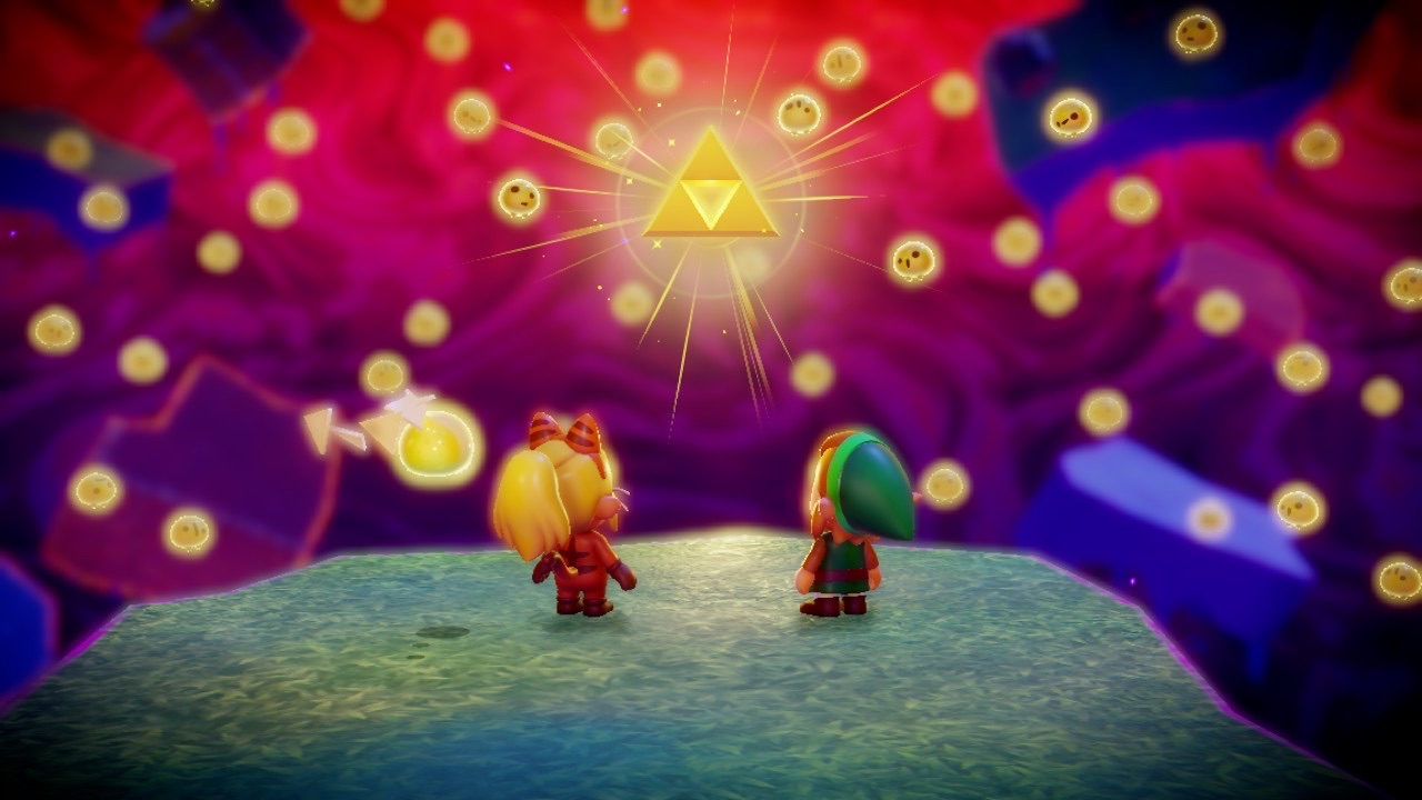 Hra zacina tim, ze hrajete za Linka, potkate Ganona, ten vas unese. Nez tak ale stihne udelat, Link zachrani Zeldu, ktera se stava hlavni hrdinkou hry. Ta se vraci zpet z mista temnoty do Hyrule, kde radi ruzne trhliny, skrze ktere do Hyrule lezou monstera. Ti, kteri do trhliny spadnou uz tam zustanou. Jen Tri a jeho kamaradi jsou schopni se trhlin zbavit a vse navratit jak bylo.