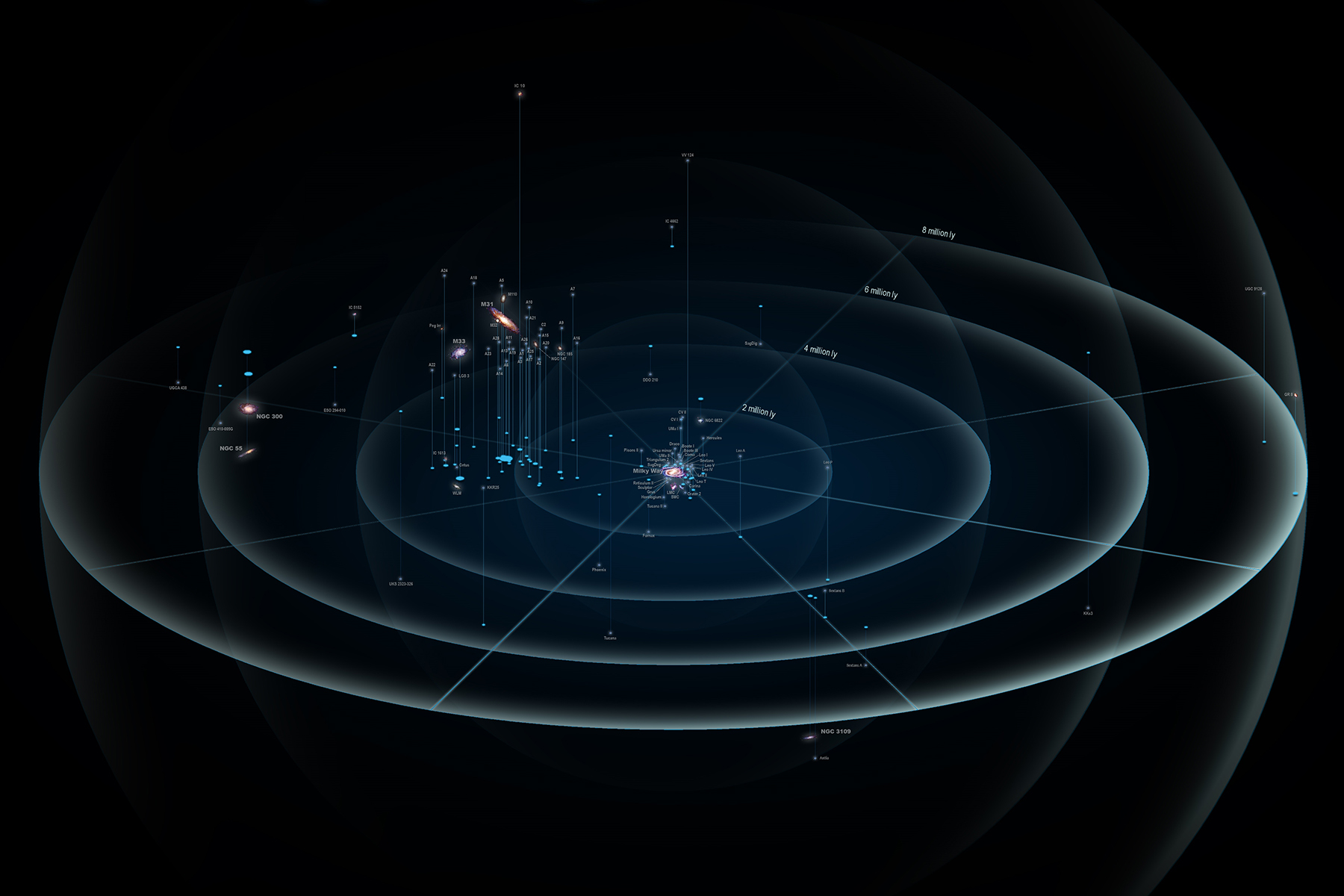 Ale nesmí se jít s představivostí raději dál :) Si totiž pak člověk představí, že jsme součástí lokální skupiny galaxií (3mio sv. let), která je součástí superkupy galaxií Laniakea (velikost 520 mio sv. let), která čítá přibližně 100 000 galaxií, což je tak velká oblast, že i kdybychom ji vnímali přes měřítko Slunce = 7 μm, tak by ta velikost představovala cca 160× vzdálenost mezi Zemí a Sluncem.. tak to pak přestane dávat lidskýmu mozku smysl, madla k uchopení informace se začnou ztrácet, tak budu doufat, že aspoň ta původní informace o Milky Way byl mírně zajímavý fakt.