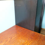 Po zhruba 30 letech věrné služby hledá další využití používaný psací stůl, který tvoří stěnu pracovny společně s dalšími prvky - skříněmi na šanony apod., policemi na knihy a šuplíky.
