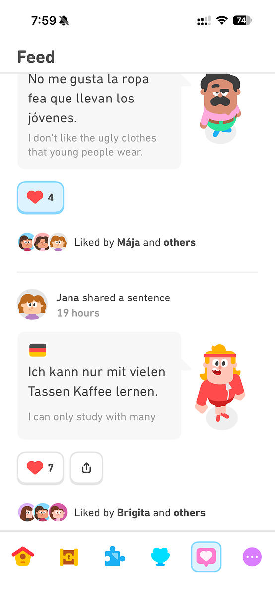 No hele k tomuhle tématu, udržuju synovi streak (už asi druhý týden, on to ani nevím protože DL aktivně nedělá, ale na tom iPadu sleduju seriál :-]) a dneska ráno mi to zrovna předvedlo tuhle scénku s postupem do vyšší ligy. Takže nevim, jak to funguje, ale nějak divně. Co mě ale zarazilo MNOHEM víc — v obrazovce s náhledem tabulky v lize to hodilo zprávu ve smyslu jsi na tolikátým místě, ale [nějakej nick] je ti v patách. Tak si říkám, tvl, že by tam měl nějakýho kámoše? V tabulce skutečně u jednoho id svítí, že je to Ami, neboli přítel. Ten profil je nicméně zamčenej. No a hlavně, syn nikoho takovýho v přátelích nemá, ani ve sledovaných, ani ve sledujících (má tam jen členy rodiny). Jako WTF.