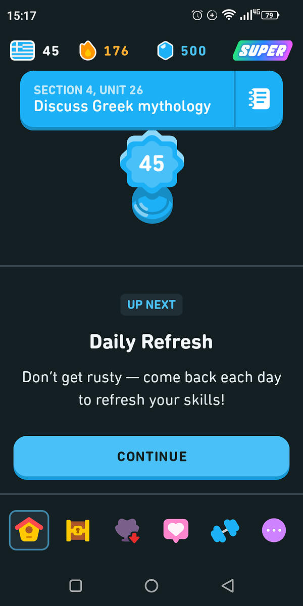 VANEK: tak už jsem taky na energii místo srdíček a obávám se, že se s Duolingem brzy rozloučím. Dát 2 max 3 lekce a hotovo nebo si užívat hromady reklam je úplně mimo.